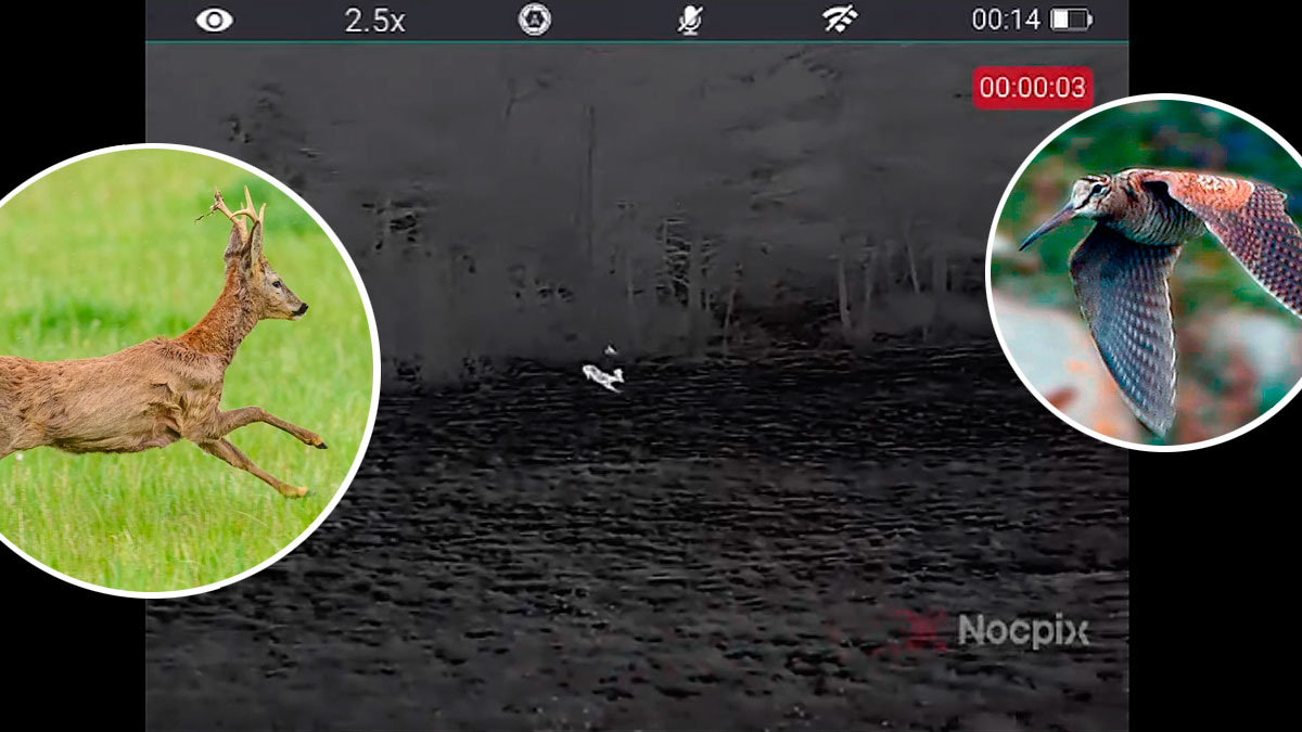 Un cazador ha grabado este documento con un monocular térmico Nocpix Lumi H35. En la grabación podemos ver cómo un corzo macho se dirige a la carrera al lugar en el que está alimentándose una sorda. Las pitorras buscan gusanos con su largo pico, lombrices e invertebrados en zonas de pasto. En el momento que alcanza el punto en el que está el pájaro amaga con golpearlo con la cabeza. El ave evita el golpe alzando el vuelo. El dispositivo térmico posibilita ver como la becada vuela hacia la arboleda, mientras que el corzo ralentiza la marcha al llegar al monte.