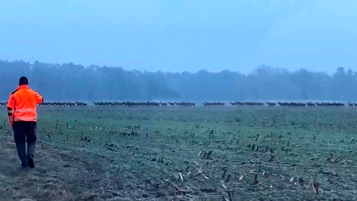 Una interminable manada de ciervos es sorprendida en una zona de cultivo