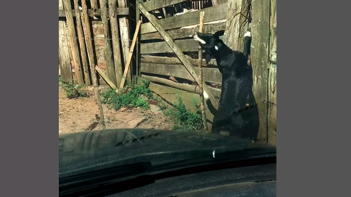 Uno de los canes que protegen y pastorean el ganado vacuno de la explotación ha sido adiestrado para abrir las angarillas de la finca cuando los ganaderos se lo solicitan. Resulta increíble la destreza del perro para realizar esta tarea.