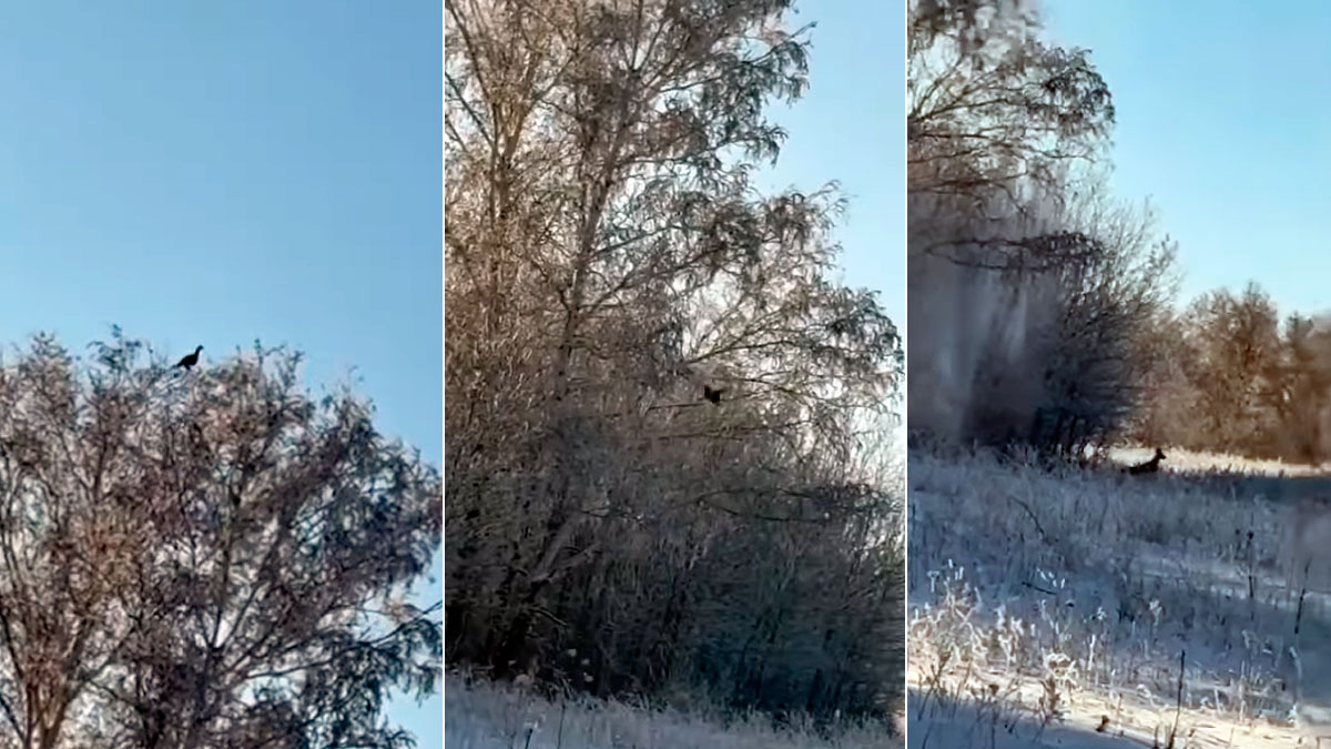 Caza un ave y le cae encima a otro animal que sale de su escondite del susto