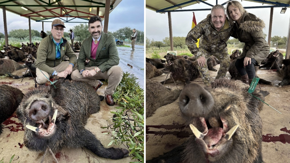 Una montería en la que deslumbra el marfil de los jabalíes abatidos