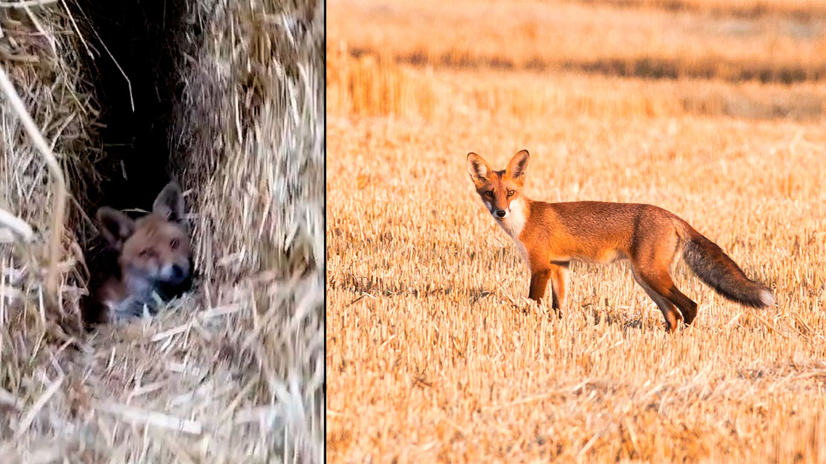 Sorprende a un zorro durmiendo en un pajar a plena luz del día