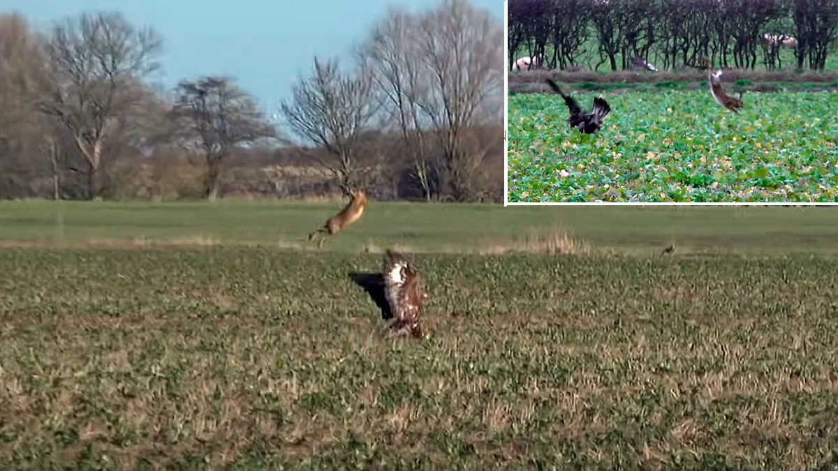 Liebres que esquivan los ataques de grandes águilas reales con espectaculares saltos