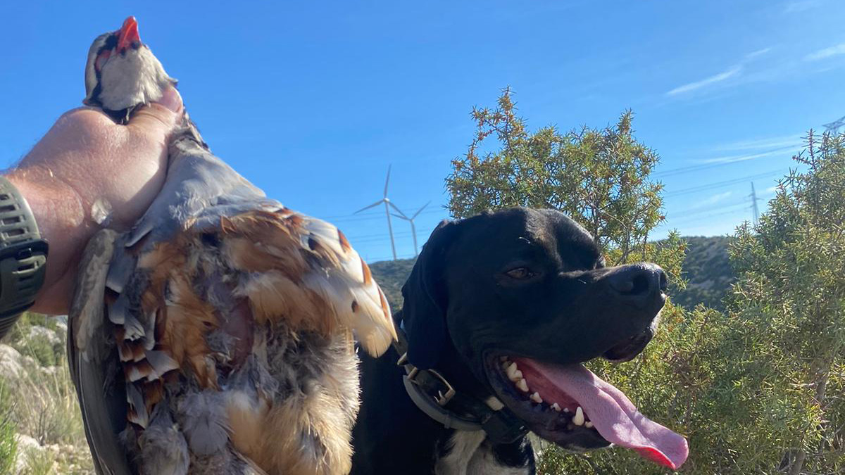 A pesar del esfuerzo necesario para lograr esta percha, el cazador desea conceder todo el protagonismo de este día de caza a Cros y Bil, perros de la raza pointer inglés. Los canes lograron guiar y poner a tiro de escopeta a las valientes perdiganas bajo unas condiciones climatológicas desfavorables y en un escenario abrupto.