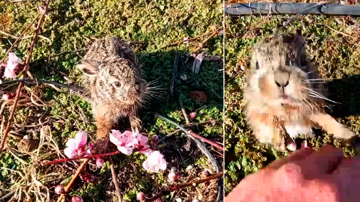 Un valiente lebrato planta cara al guarda rural que trata de salvarlo de las cuchillas de una trituradora agrícola