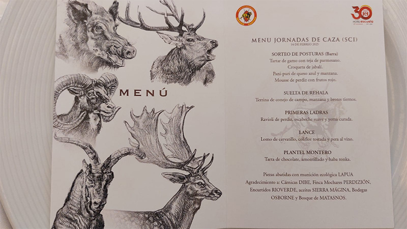 Con un menú en homenaje a la Montería Española, el Safari Club Internacional convirtió la cuarta edición de sus Jornadas Gastronómicas de Caza en una experiencia montera en la que los platos iban recreando el desarrollo de una de las modalidades más arraigadas en la venatoria nacional y, a la vez, que más y mejor carne de caza proporciona a la sociedad.