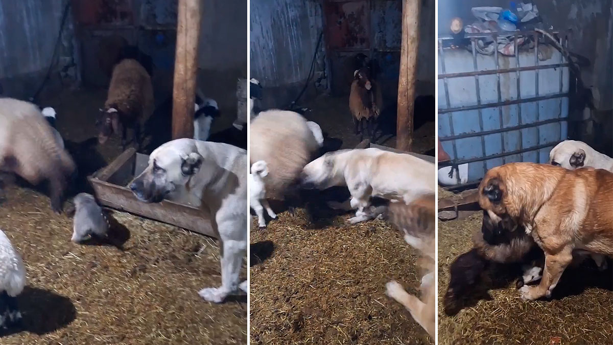 Una oveja ataca a un cachorro de mastín y los adultos ponen orden