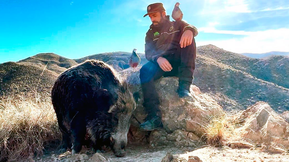 El enorme macho llegó a las manos de Juan Carlos hace 9 años. Un vecino se lo llevó cuando era un rayón. Su madre había sido atropellada. Con la ayuda de su familia y uno de sus perros logró sacarlo adelante. En cuanto el cochino pudo valerse por sí mismo se marchó de la parcela propiedad del almeriense. Pese a ello, entre el guarda y el cochino se ha creado un vínculo indestructible.