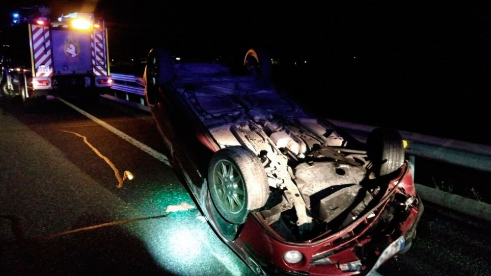 Anoche un conductor no pudo evitar colisionar con un jabalí, lo que le llevó a perder el control del coche, que terminó volcando.
