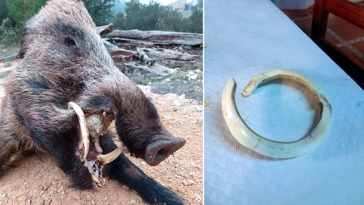 No es el primer cochino con esta malformación abatido esta temporada en España. Xabier Eguíalaz, integrante de la Cuadrilla de Amigos Cazadores, abatió un ejemplar de 130 kilos con 25 y 24 centímetros de colmillo en una batida organizada en La Valdorba, valle situado en la merindad de Olite, en la Zona Media de Navarra.