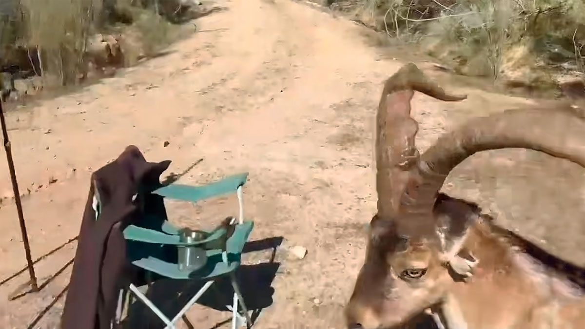 La rehala va ladrando mientras persigue al ejemplar de cabra montés. Esto permite al cazador sacar su cámara y grabar lo que está a punto de suceder, una escena inolvidable protagonizada por una especie que no suele aparecer en este tipo de modalidad venatoria.