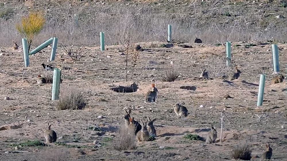 La comunidad en la que están ubicados los terrenos en los que se han grabado estas imágenes ha autorizado de manera excepcional cazar conejos durante la noche mediante aguardo y espera, además del uso de trampas para controlar su población.