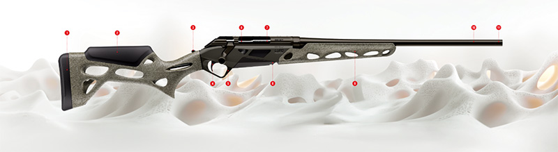 Para conseguir el rifle más ligero, los ingenieros y diseñadores del gigante italiano han acudido a lo que han denominado como “un enfoque de ingeniería revolucionario y el uso de tecnologías de vanguardia”. Gracias a estos avances, nace una nueva especie de rifle de cerrojo obsesionado con ser preciso y, sobre todo, ultraligero.