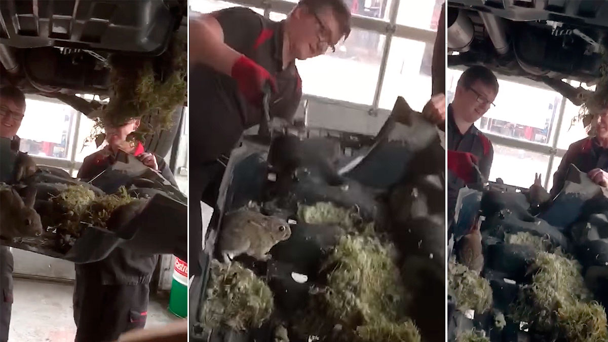 Acudes al mecánico por ruidos extraños que escuchas en tu coche y vuelves a casa con una caja llena de conejos. Este es el resumen del viral vídeo que compartimos hoy en el que volvemos a comprobar que los animales se comportan con una preocupante tendencia a entrar en los recovecos que encuentran en los automóviles para sustituirlos por sus huras y madrigueras. Es algo que ya hemos visto en varias ocasiones, pero con otra especie como protagonista, la liebre, que se había refugiado dentro del protector del cárter de un coche.