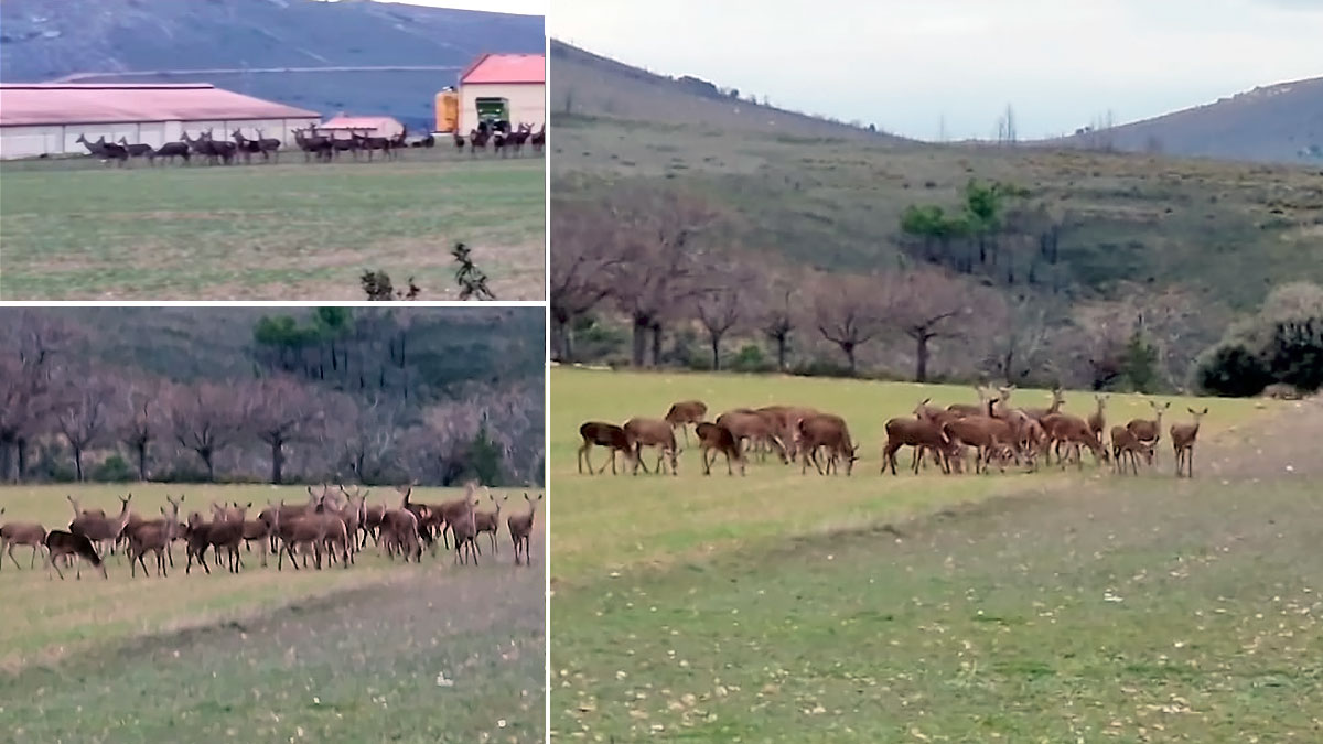 Una de las manadas de ciervos alimentándose del cereal nacido.