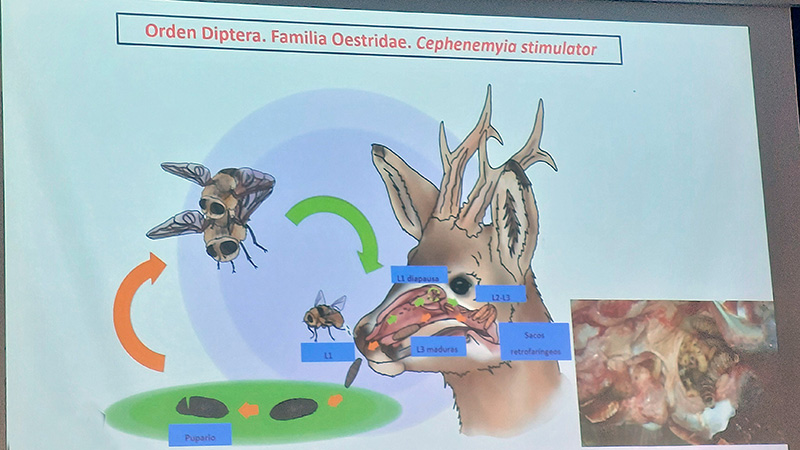 1. Mediante necropsias en corzos del norte peninsular, se registró una alta presencia de larvas de Cephenemyia.