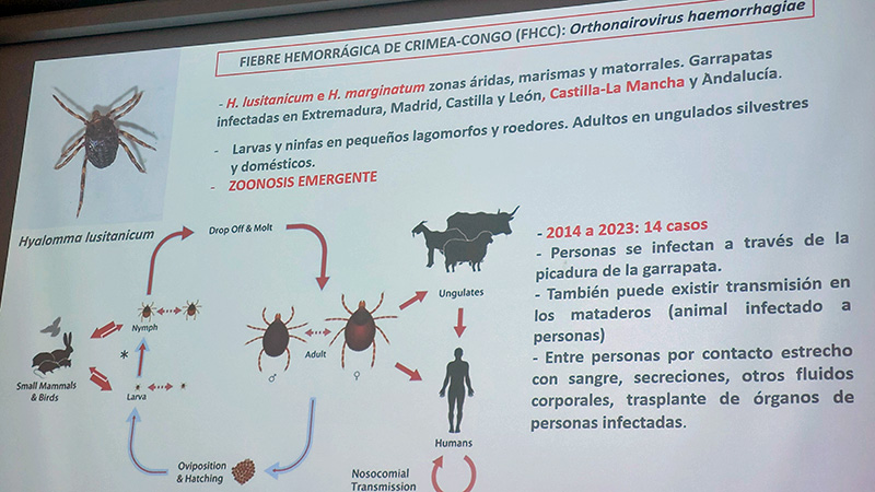 Otro punto clave fue el estudio sobre las garrapatas, ilustrado con un gráfico didáctico que mostró la prevalencia de infestación en corzos y el riesgo de transmisión a otros animales y al ser humano.
