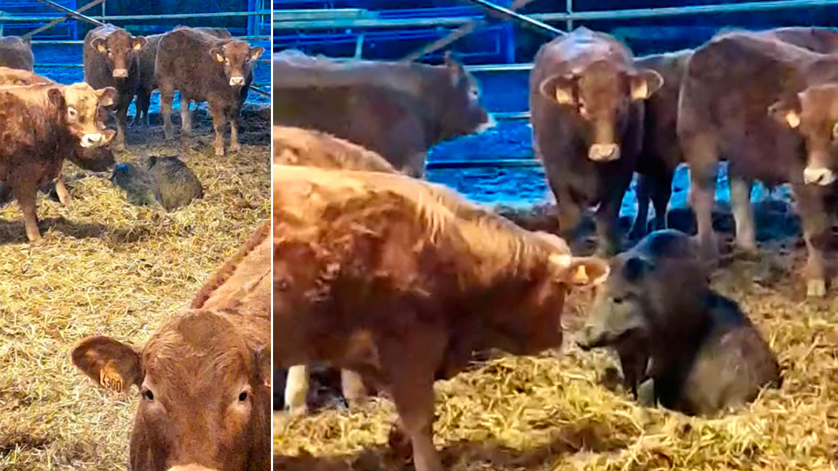 Un ganadero encuentra dos jabalíes durmiendo entre sus vacas
