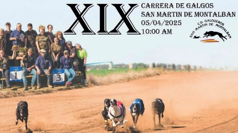 El día 5 de abril de 2025, San Martín de Montalbán celebrará su habitual carrera de galgos en recta con liebre mecánica, una cita obligada para los amantes de los perros y, en especial, de esta raza tan tradicional en nuestra región. Se espera la participación de casi un centenar de galgos procedentes de todos los puntos de España.
