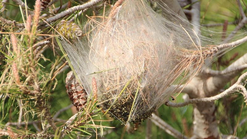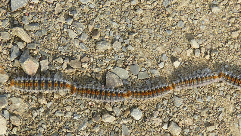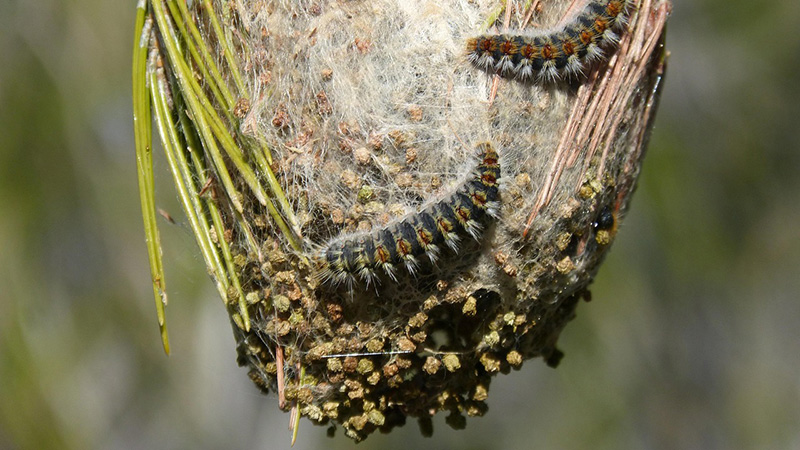 Esos nidos sedosos, también llamados bolsones, que cuelgan de especies arborícolas el grupo de las coníferas, como pinos, abetos, cipreses, cedros, enebros, sabinas o tejos comienzan a ser abandonados por las orugas, tras entre 30 y 40 días desde la puesta de los huevos. Este es el momento, entre febrero y junio, dependiendo del clima, en el que comienza el problema, cuando bajan al suelo tras finalizar su estado larvario y se desplazan en esas largas filas buscando el lugar idóneo en el que enterrarse y crisalidar.