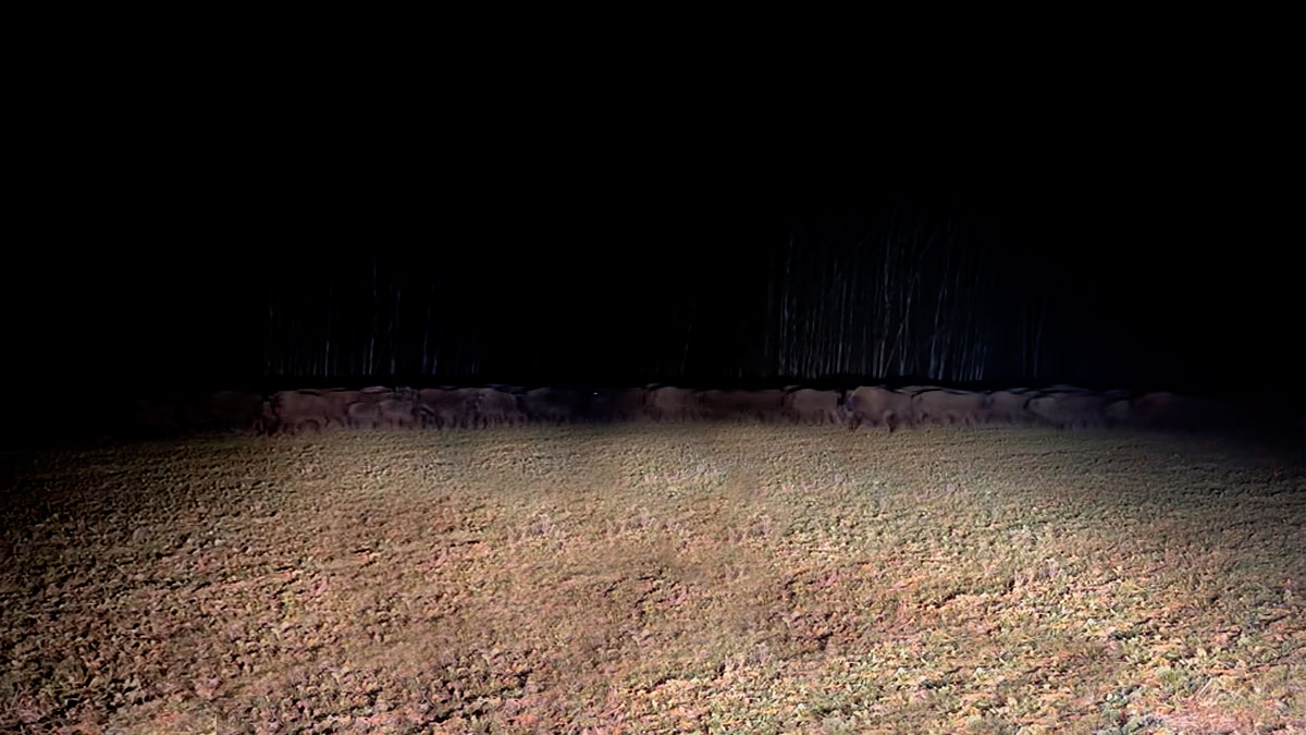 Además del daño ocasionado por tantísimos animales en las siembras de la zona, un conductor registró hace escasas semanas otro de los riesgos que llevan consigo estos bisontes. Se ve obligado a detener su vehículo al acercarse a la ingente manada, que ha comenzado a cruzar la calzada prácticamente en fila india en una acción que se va a prolongar unos minutos.