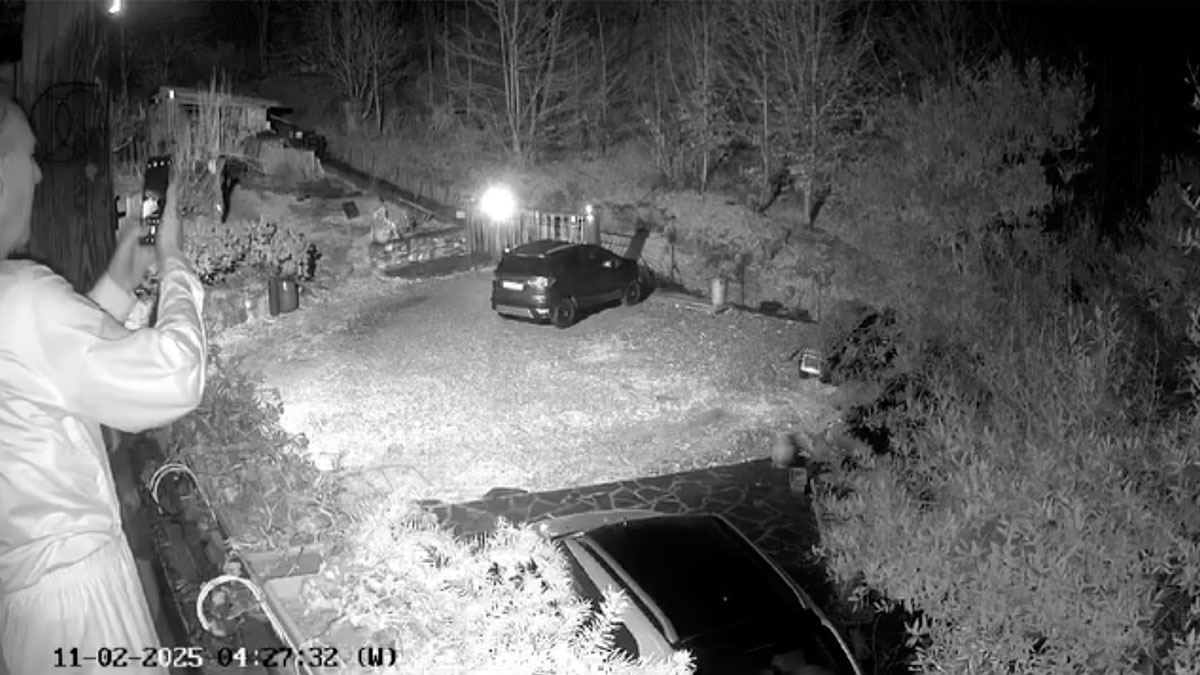 La cámara de seguridad de una casa de Arola, comuna italiana de la provincia de Verbano-Cusio-Ossola, región de Piamonte, graba la escena de caza que contemplaron los dueños de la edificación la madrugada del 11 de febrero. Una pareja de lobos persigue a un jabalí que quiere refugiarse aterrorizado dentro de la valla que delimita la propiedad. El sonido que emite el cochino cuando es atrapado por los cánidos salvajes despierta a la familia.