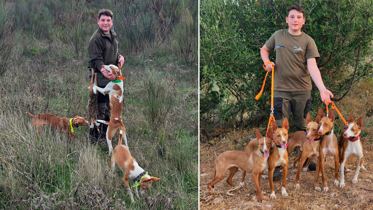El aprendiz de cazador de Cuevas del Becerro, municipio de la provincia de Málaga, es un apasionado a la caza del conejo a diente con sus podencos andaluces y de la jaula. Su pasión por sus perros es tal que pidió a sus padres hacerse las fotos de la celebración de su comunión junto a dos de sus podencas. Sus padres, tíos y abuelos han transmitido al joven el amor por la naturaleza y los valores del código ético de la caza. Su padre, Diego Gil Ponce, y su tío, Francisco Javier, son dos reconocidos criadores de podencos andaluces y oritos.