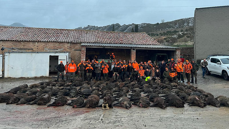 José María Fernández es el ideólogo de esta bonita iniciativa. Hace más de un lustro que reúne a un grupo de cazadores de Sevilla y Huelva para vivir una experiencia de cuatro días de caza junto a los integrantes de la Colla de Arén. Se desplazan a los terrenos que gestiona el grupo de cazadores oscense cuando finaliza la temporada de caza en Andalucía. No solo viajan para cazar, también comparten momentos y experiencias con cazadores y rehaleros de otras comunidades. En cuatro días de caza abatieron 272 cochinos.