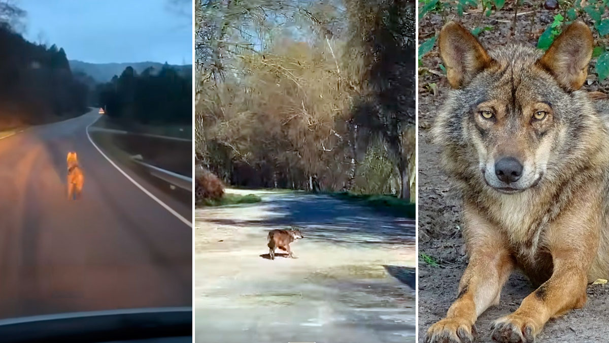 Un lobo en las inmediaciones de la piscina municipal de un pueblo de Orense y otro corriendo delante de un coche en una carretera de Guadalajara. Dos vídeos recientes con el mismo protagonista, un lobo lejos de los montes donde debería habitar.