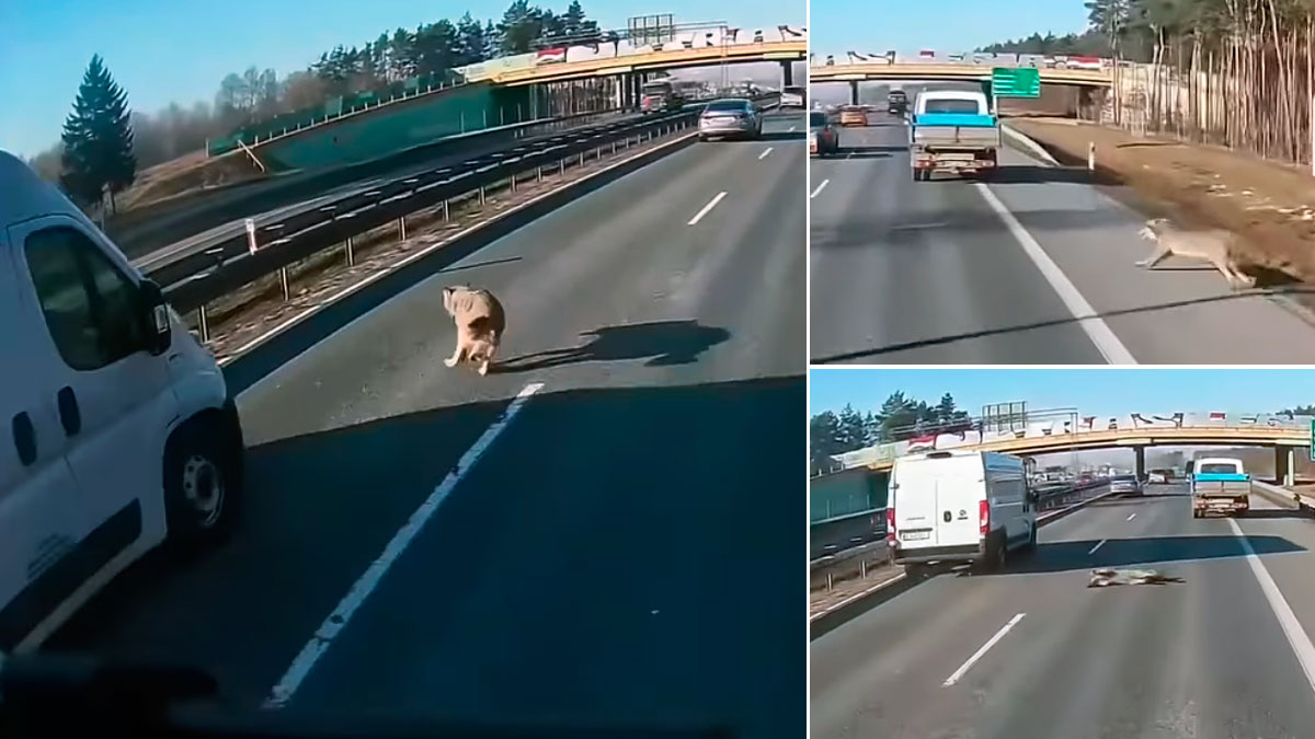 La vía rápida está protegida por un vallado metálico, pero este ejemplar de lobo gris ha conseguido superarla para acceder al asfalto. No es la primera vez que uno de estos animales trepa o incluso salta una alta verja gracias a su agilidad y potencia física.