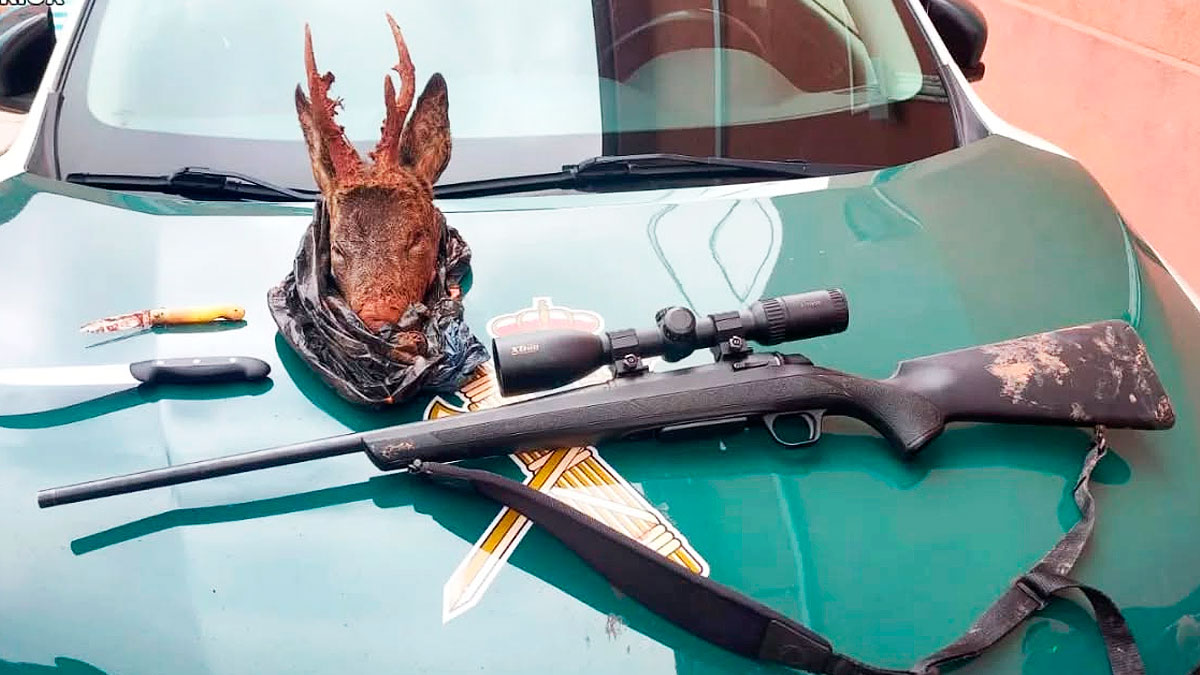 Al delito contra la flora y la fauna se le une el de desobediencia grave a la autoridad. En el momento de la detención, efectuada en los montes de Canales de Molina, los agentes de la Benemérita encontraron una cabeza de un macho de esta especie de cérvido, además de un rifle, un visor térmico, dos armas blancas y munición.