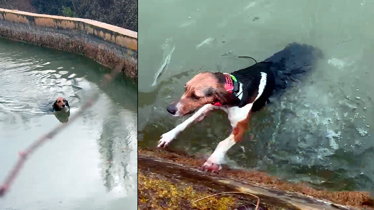Una rehalera salva in extremis la vida de uno de sus perros que había caído en un canal de riego