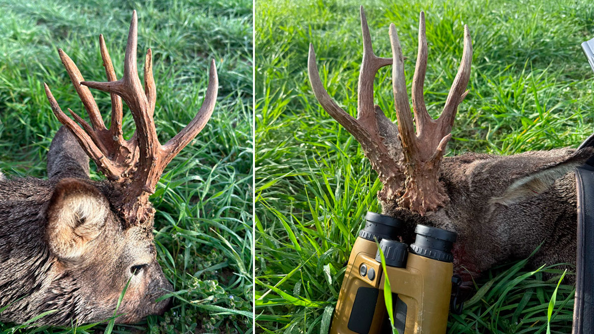 Mi sorpresa ha sido encontrar todas esas puntas con un grosor impresionante, además de un perlado muy bonito”. Como vemos en las imágenes, el corzo cuenta con seis puntas en la cuerna izquierda y tres en la derecha.