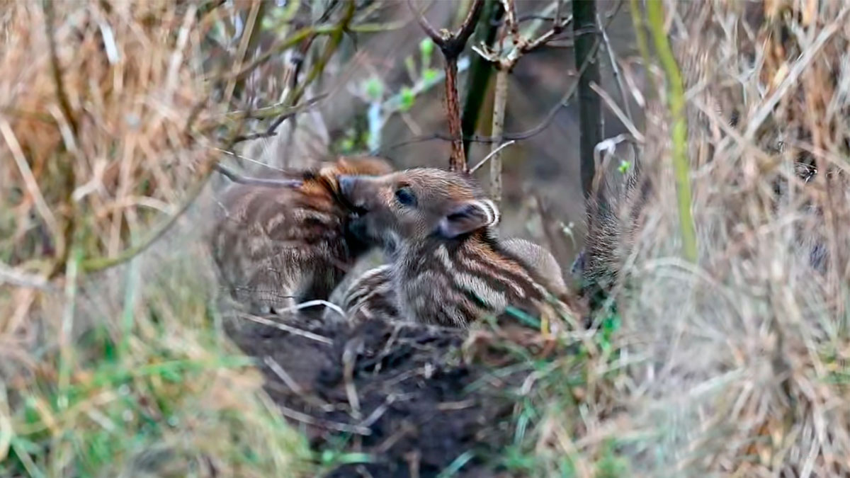 ‘Peleas salvajes’, titula el autor del precioso vídeo en el que vemos a varios rayones, crías de jabalí de escasos días de vida, jugando entre ellos mientras su madre descansa en el nido o encame.