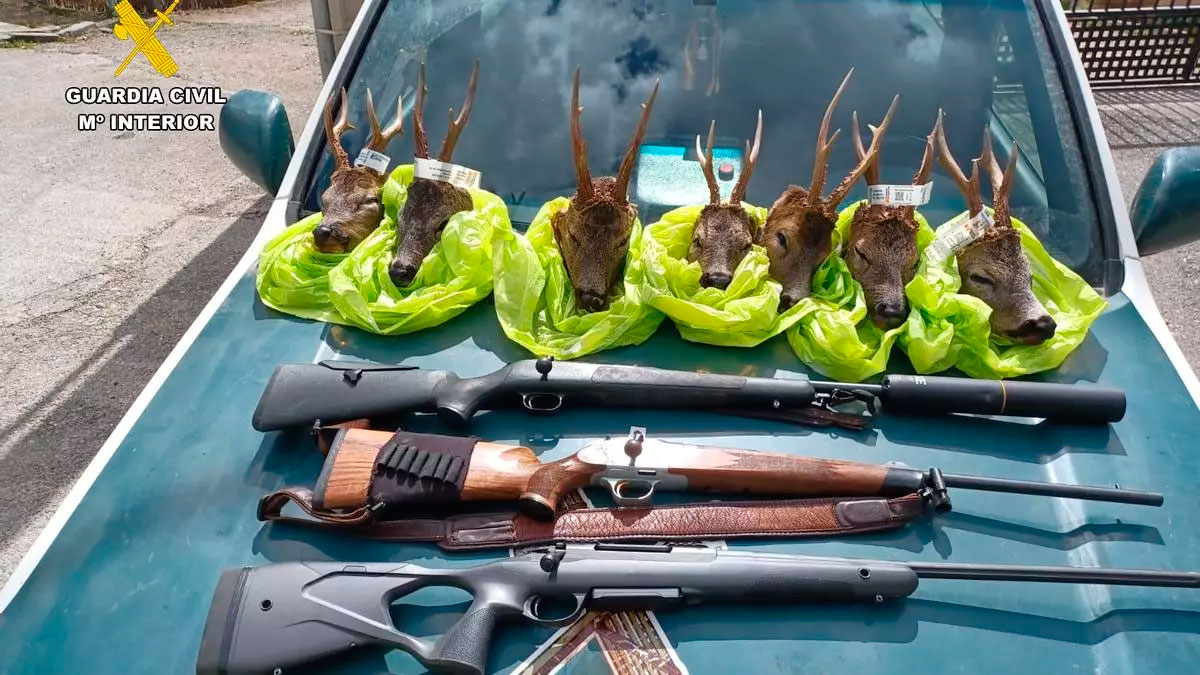 Las cabezas de los corzos, en su mayoría ejemplares jóvenes y con trofeos alejados de altas puntuaciones, depositadas en oficinas del Gobierno aragonés en Huesca y las armas y el silenciador, en dependencias de la Intervención de Armas y Explosivos de la Guardia Civil en Graus.