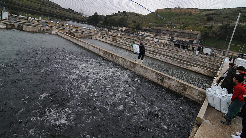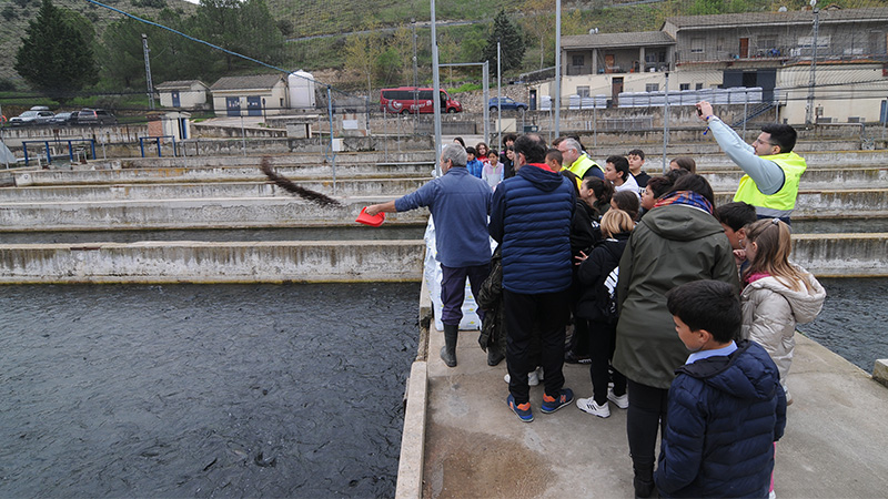 El viernes se inició la VI edición de la Feria de Caza y Medio Rural de Illana con la visita guiada de los escolares del municipio a la piscifactoría Piszolla, ubicada a diez minutos del centro rural. Un centro francés donde engordan 250.000 unidades de trucha arco iris que envían, cuando superan los tres kilos de peso, a Francia para convertirlas en filetes ahumados que luego venden en el mercado español. Los jóvenes pudieron echarles comida y ver cómo revoloteaban en el agua al percibir el alimento.