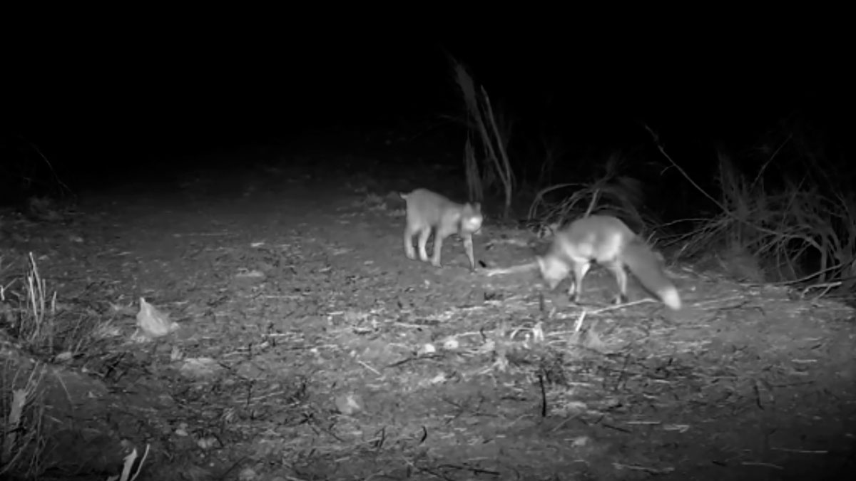 Primero vemos cómo el lince aparece en escena. Poco después, lo hace el zorro. A las 4:14 horas comienza la pelea. Oímos los gritos de dolor del cánido mientras ambos animales se revuelven entre los matorrales. El raposo no tiene nada que hacer ante el poder del felino, mucho más fuerte, ágil y feroz. Pocos minutos después acaba la lucha y el lince aparece de nuevo sin mostrar indicios de haber sufrido la más mínima lesión.