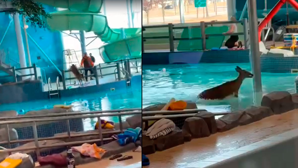 La presencia de una hembra de ciervo de cola blanca genera el caos en el complejo acuático H2Oasis del Centro Vollmer, situado en LaSalle, distrito de la ciudad de Montreal. Las instalaciones incluyen la Piscina de Ocio Jennifer Cole-Cheng, sauna, spa, río lento y tobogán acuático. El rescate de la cierva moviliza a todo el personal de la empresa. Tratan de capturar al ungulado para devolverlo a su medio.