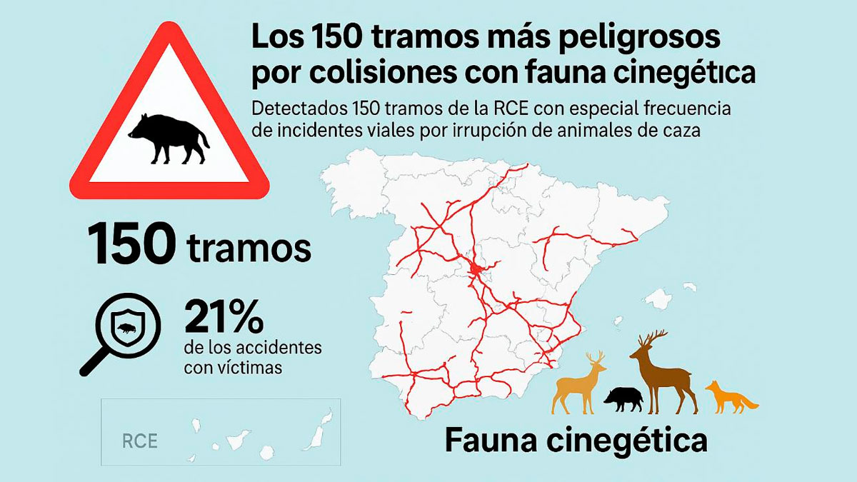 El Ministerio de Transportes, a través de su Dirección de Carreteras, ha identificado los tramos con mayor riesgo de siniestro por invasión de animales pertenecientes a la fauna cinegética en la calzada. Los ha denominado TEFIVA, Tramos con Especial Frecuencia de Incidentes Viales con Implicación de Animales.