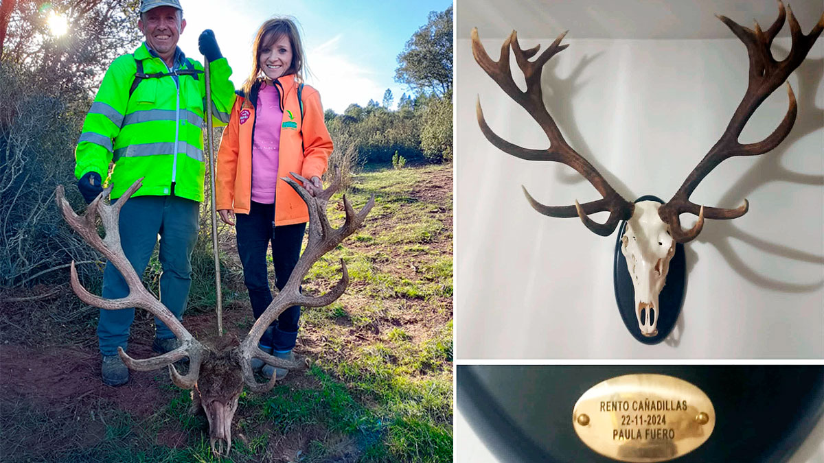 El viernes 22 de noviembre, Paula y su padre participaron con sus perros, de las razas sabueso, beagle, grifón, anglo francés, dogo argentino, podenco andaluz y portugués, en una montería celebrada en la finca Rento Cañadillas. En la jornada realizada por la orgánica cinegética Gescico, la perrera se llevó una grata sorpresa. Mientras estaba batiendo una zona de monte, en un reguero, descubrió en la distancia la cuerna de un ciervo. Al acercarse al caudal de agua, halló los restos de un espectacular macho. Las astas del ejemplar destacan tanto por el número de puntas como por su grosor.
