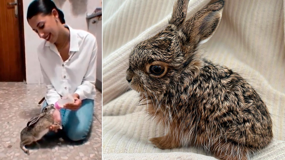 La cría fue encontrada con menos de una semana de vida aferrada a la mama de su madre muerta por la mixomatosis. El cazador ha logrado sacarla adelante a base de esfuerzo y constancia.