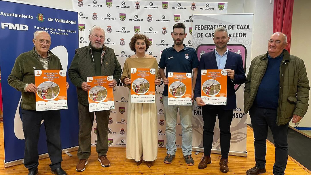 El presidente de la RFEC, Josep Escandell; el presidente de FEDECAZACYL, Santiago Iturmendi; el delegado de caza en Valladolid, Jesús Hernández, y la concejal de Participación Ciudadana y Deportes del Ayuntamiento de Valladolid, Mayte Martínez, han presentado en el Ayuntamiento de Valladolid esta cita que reúne durante el sábado y el domingo a los mejores competidores de esta modalidad y atraerá a más de 1.000 personas entre participantes, jueces y público en general.