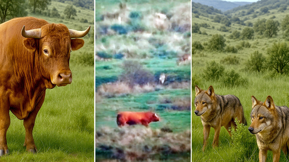 En esta ocasión, la corpulencia y el tamaño —un toro Limousin adulto pesa generalmente entre 700 y 1.000 kilos— intimidan a los lobos, que no se atreven a atacar al bovino.
