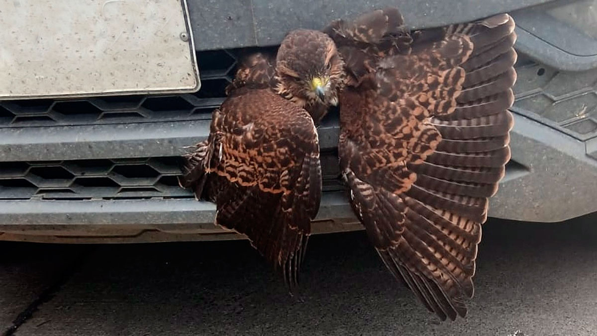 La escena ha sucedido en Chile. Allí, un miembro del Ministerio de Agricultura acudió a la llamada de un ciudadano que golpeó a una pequeña rapaz que encontró en su trayecto y el ave quedó apresada en la rejilla de ventilación del coche.