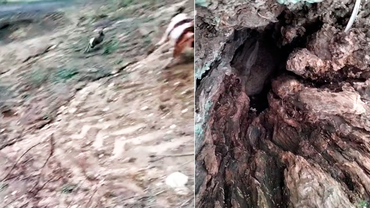 La salida del lagomorfo del interior del tronco de un olivo centenario sorprende al cazador cuando está intentando mostrar con la cámara GoPro el lugar en el que se encuentra encamado.