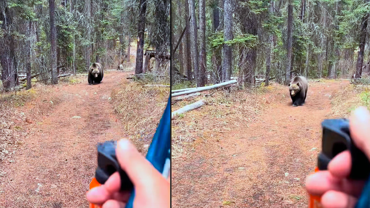 Cinco minutos de tensión sin saber si vas a salir vivo de un encuentro con uno de los animales más peligrosos del planeta. Esto es lo que vivió un joven excursionista que volvió su cabeza y descubrió que un oso grizzly le seguía los pasos por un sendero del Parque Nacional Banff, en Canadá.