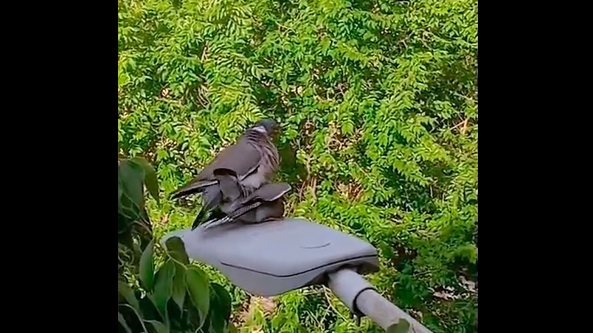 Son cada vez los municipios en España en los que podemos encontrar torcaces en plazas y jardines. Dos de estas palomas urbanas eligen un complicado lugar para reproducirse.