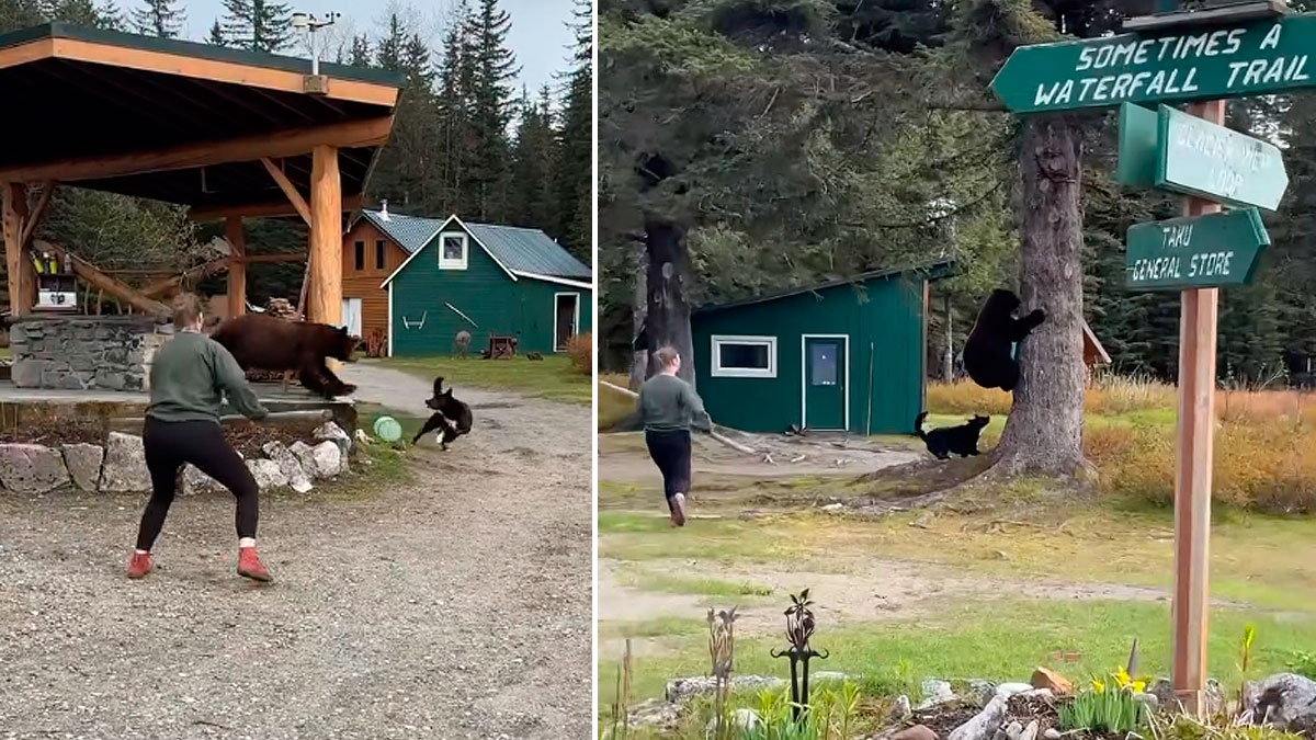 La escena se ha producido en Taku Lodge, un enclave idílico ubicado en Alaska e inscrito en el Registro Nacional de Lugares Históricos. Se encuentra en una zona rodeada de glaciales a la que se accede en hidroavión. Entre el catálogo de servicios incluidos de estas instalaciones encontramos lo siguiente: “Posibles avistamientos de oso negro”. Algo que queda sobradamente demostrado.
