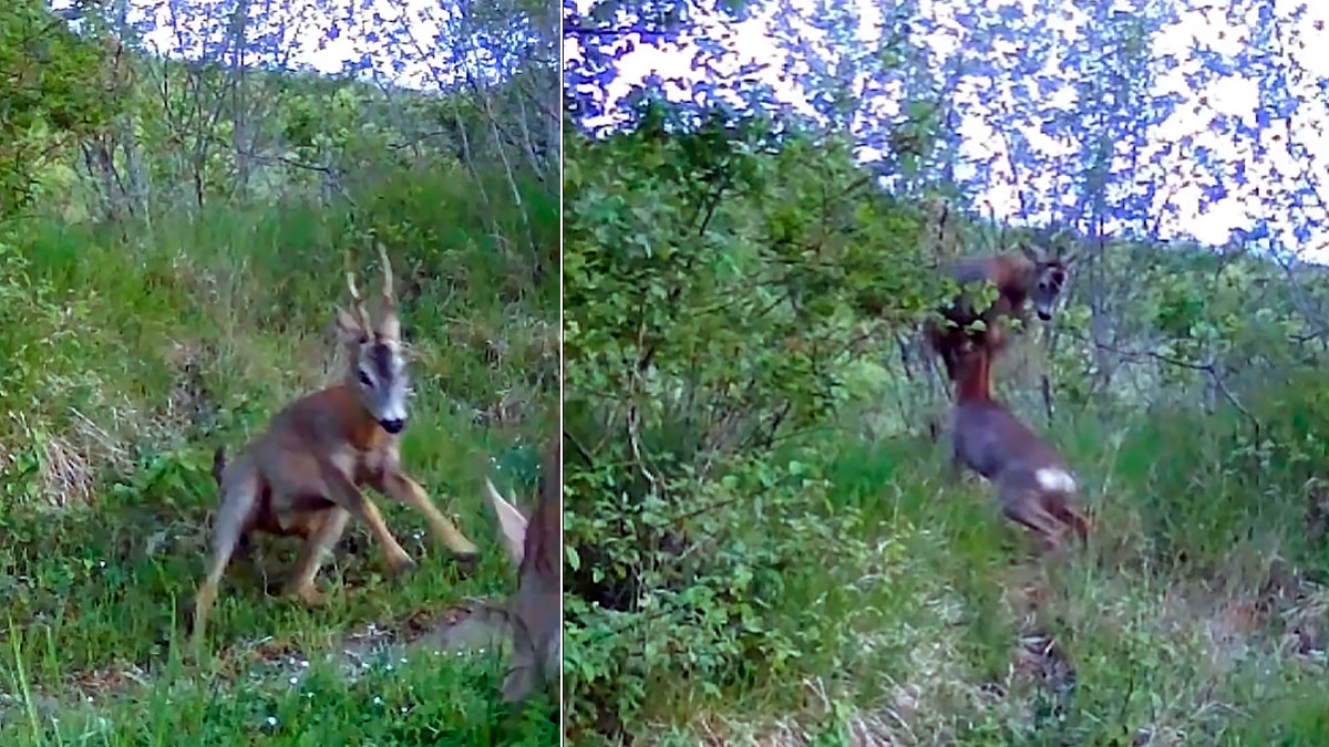 Dos corzos se enzarzan en una violenta pelea delante de una cámara de fototrampeo