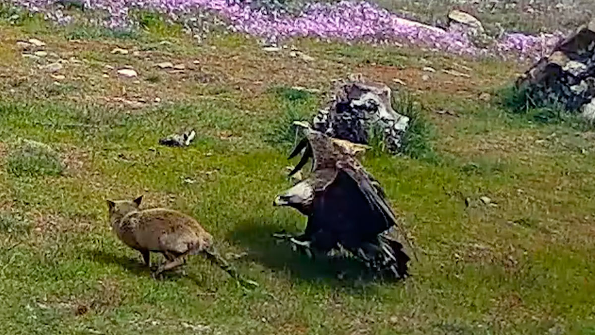 Lucha por la supervivencia: un zorro le roba la presa a un águila real